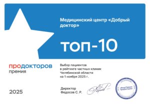 Медицинский центр «Добрый Доктор», благодаря Вашему доверию, вошёл в топ-10 среди медицинских учреждений Челябинской области! Мы признательны за выбор и оказанное доверие. Благодарность пациентов- лучшая награда для нас.